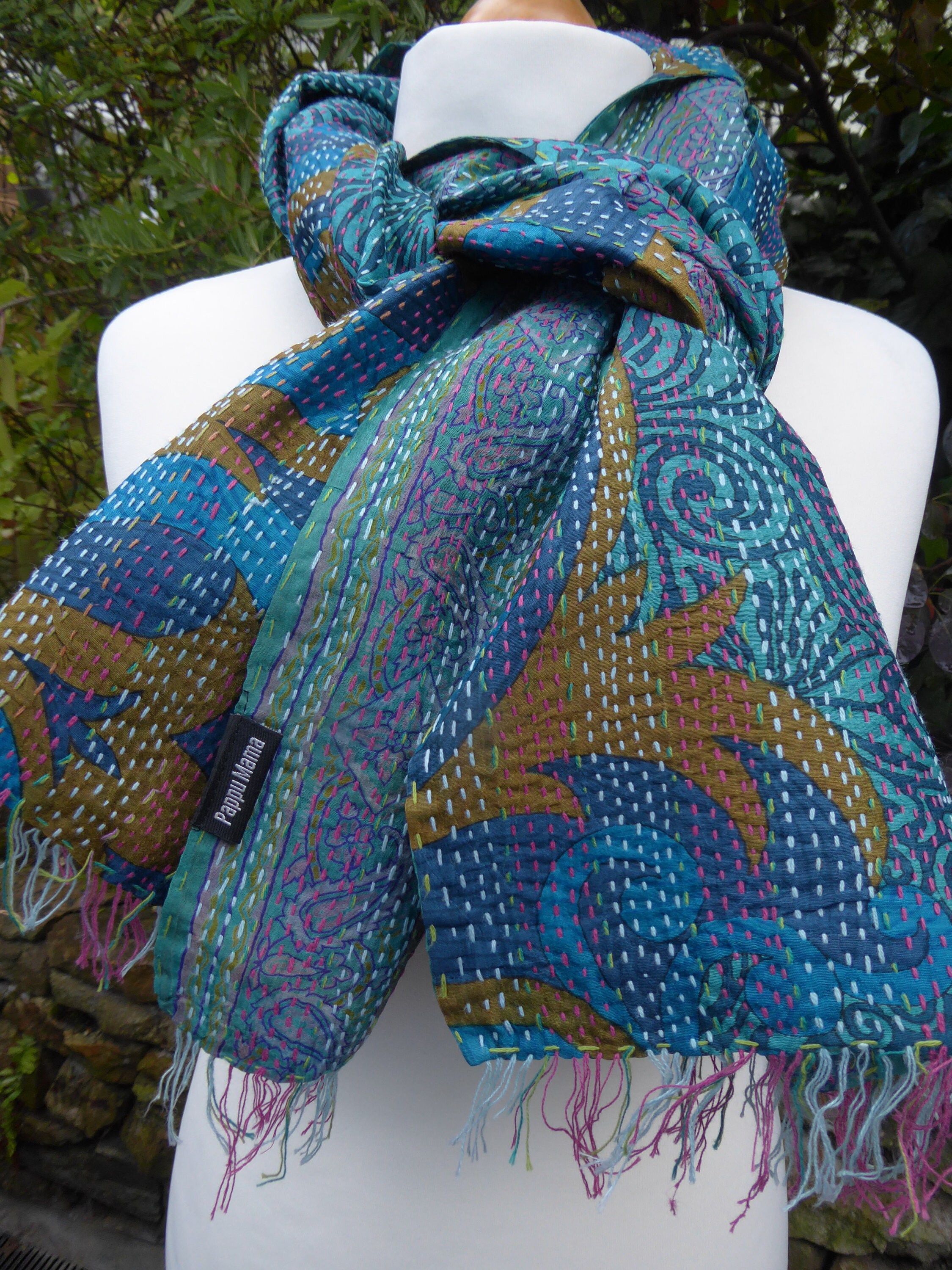 Kantha Stitch Reversible Silk Scarf Wrap Etsy Denmark